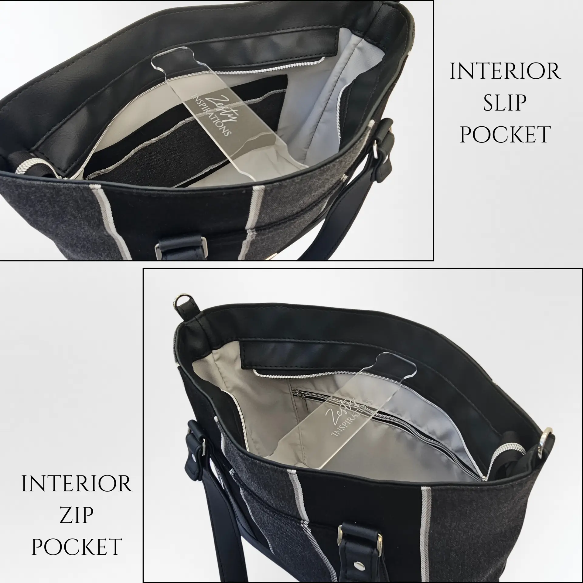 The exterior includes two handy slip pockets for quick-access items, while the generously sized interior boasts a large slip pocket (sized to fit an 11″ tablet), a secure zippered pocket, and a dedicated key holder so you’re never digging around at the bottom of your bag.